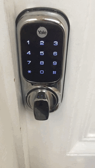 Step 3: You will see an electronic Yale lock on the flat door. Please hold your hand on it until it lights up. Once it has lit up, enter the 6 digit code you’ve been sent, press the star (*) symbol and turn the handle at the same time to open the door. Your individual door code will bear send before your arrival.
